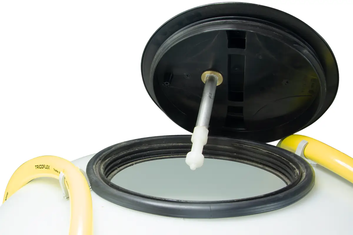 - Tank: Behälter aus lebensmittelechtem HDPE (Kunststoff)