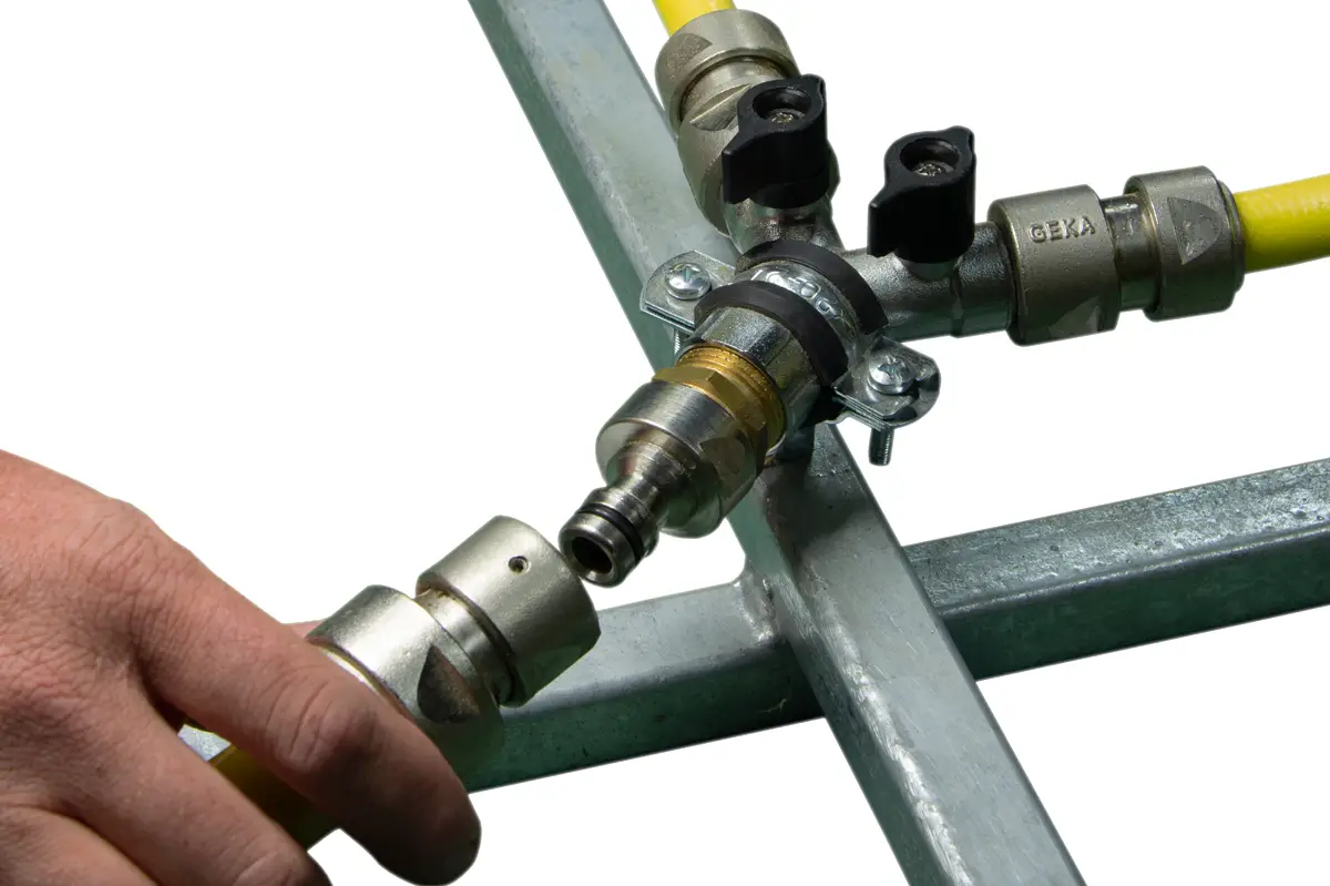 Ein Anschluss für zwei Anwendungen: Luftzufuhr (Inbetriebnahme) und Wasserzufuhr (Reinigung)